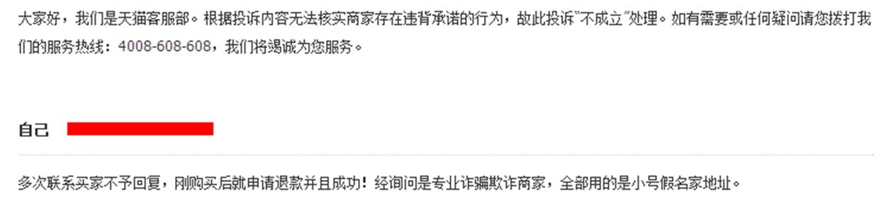 我们这个投诉当然不成立啦,因为了解情况,所以天猫还是站在我们这边的。
