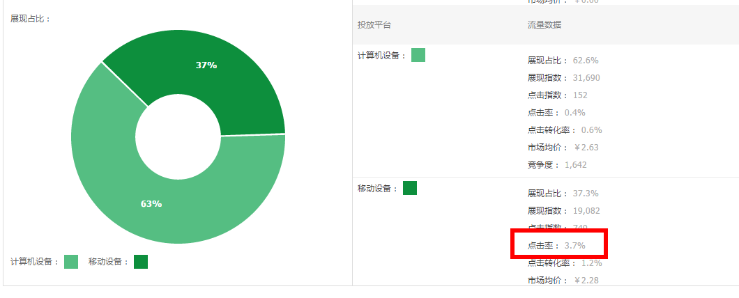 2、投放平台设置:计算机设备的淘宝站外折和移动设备的移动折扣,是否有设置出价高于100%的现象