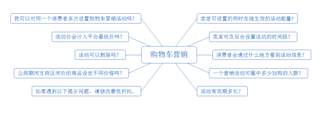 购物车透出:会有限时ICOM和实时倒计时提醒。所以我们在活动设置之后会有系统自动提醒的,各位留意一下就可以了。下面我还针对各位同学可能遇到的问题进行了一个汇总,算是福利发放给大家。