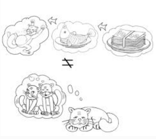 第三个销售员过来说:猫先生请看,我这儿有一摞钱,能买很多鱼,你就可以大吃一顿了。话刚说完,这只猫就飞快地扑向了这摞钱--这个时候就是一个完整的FAB的顺序。