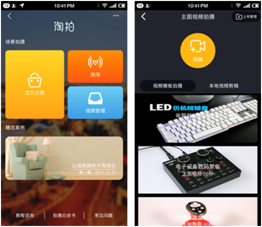 进入淘拍探索版首页-点击宝贝主图拍摄,里面可以根据自己的宝贝类目选择对应的板块拍摄,拍摄完成可以剪切掉不要的部分,制作完成之后可以直接上传啦!
